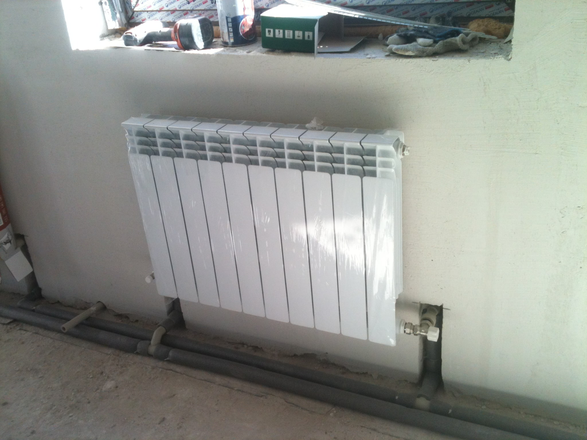 - Монтаж радиатора с подключением к регулирующей арматуре
